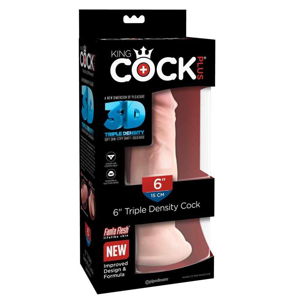 Ce gode réaliste de 6" Triple Density Cock de King Cock Plus a un noyau dur et une surface particulièrement douce. On se sent donc comme dans l'original. La surface est conçue de manière réaliste avec un gland prononcé et des veines. Cette bonne pièce est compatible avec les strap-ons et possède une base à succion pratique pour les balades en mains libres.